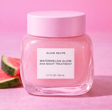Glow Recipe’s Watermelon Glow AHA Night Treatment is an overnight skincare treatment designed to gently exfoliate, hydrate, and brighten your skin while you sleep.